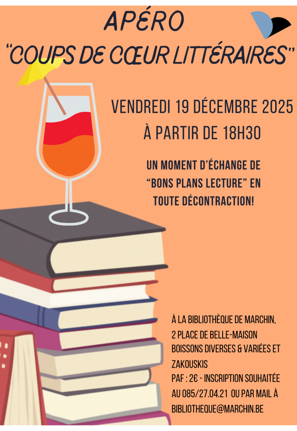 La bibliothèque OYOU a le plaisir de vous inviter à son apéro "coups de cœur littéraires" ce vendredi 16 mai à partir de de 18h30 ! Un moment d'échange de "bons plans lecture" en toute décontraction, à l'heure de l'apéro? Nous vous invitons à partager votre ou vos derniers coups de cœur, qu'il s'agisse de romans, de bandes dessinées ou de livres de recettes, provenant des collections de la bibliothèque ou non, qu'importe, tant qu'on parle de lecture !